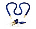 Cordon pour potelet en velours lisse rouge ou bleu avec deux embouts extrémités à mousquetons couleur or. À fixer sur un poteau de balisage à corde.