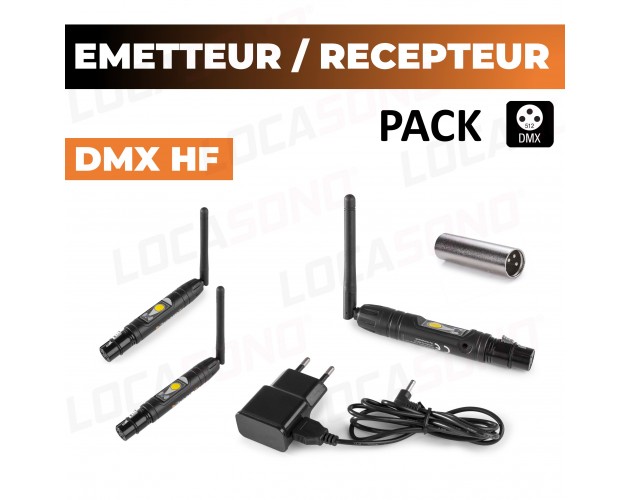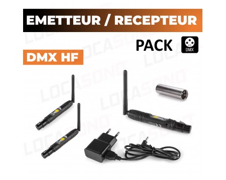 Location Pack DMX HF Sans Fil - 1 Émetteur + 2 Récepteurs - Portée 25m