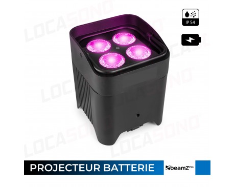 Le BBP54 est un projecteur PAR compact idéal pour une mise en lumière. Il peut donc être utilisé aussi bien à l'extérieur qu'à l'intérieur. Il est doté de 4 LEDs très brillantes 12 W, RGBAW-UV et d’une batterie intégrée amovible pour 15 heures de fonctionnement au plus à pleine charge, en fonction des couleurs et de l’intensité. Le pied réglable peut être fixé sous différents angles, permettant de positionner le projecteur en coin. Il peut communiquer via l’infrarouge ou le DMX, permettant ainsi de connecter les appareils entre eux facilement.